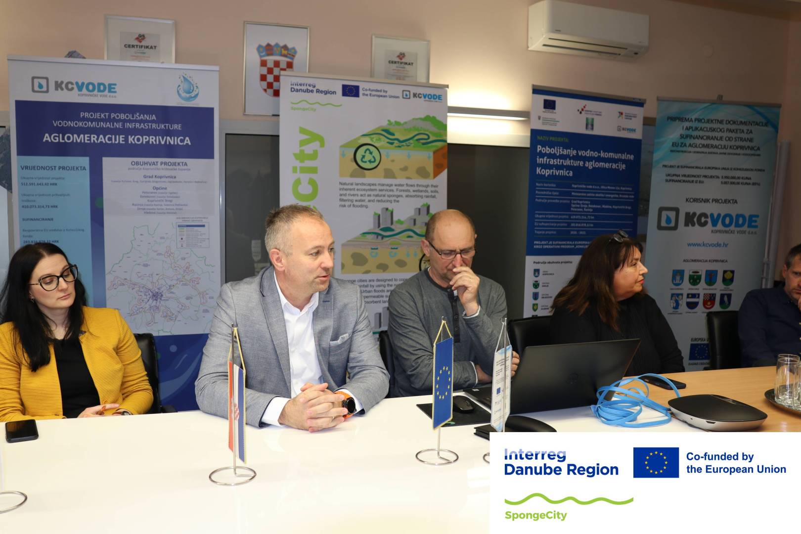 U Koprivničkim vodama u srijedu, 9. travnja, održan je tematski sastanak/radionica ključnih dionika SpongeCity projekta. Bio je to prvi sastanak trećeg projektnog razdoblja, odnosno peti po redu od početka projekta. Uz projektni tim i upravu Koprivničkih voda sastanku su prisustvovali zamjenica gradonačelnika Koprivnica Ksenija Ostriž, predstavnice Zavoda za prostorno uređenje Koprivničko-križevačke županije Jelena Kovač i Maja Ban te predstavnica GKP Komunalac Nataša Njegovec, a kao vanjski stručnjak Tanja Uzelac iz tvrtke Starum d.o.o. iz Pule. Glavna tema ovog sastanka je bila „zelena infrastruktura“, pojam koji označava sinergijska tehničko-prirodna, višestruko korisna rješenja u borbi s urbanim aspektima upravljanja vodnim ciklusima u okružju posljedica klimatskih promjena. Nakon uvodnih osnovnih informacija o generalijama, planovima, ciljevima i terminskoj realizaciji projekta, tematska stručnjakinja Tanja Uzelac izložila je niz primjera i rješenja urbane odvodnje temeljenih na ekološkim, zelenim principima, ponajviše iz Pule, ali i iz drugih hrvatskih sredina. Urbane karakteristike Pule (skučenost infrastrukturnih koridora, konzervatorski uvjeti, morfologija terena) i posljedice klimatskih promjena (bujične poplave, toplinski otoci, sušna razdoblja) uvjetovali su alternativni pristup klasičnim rješenjima odvodnje kroz ‘sivu’ infrastrukturu i upravo je grad Pula „Sponge City“ koji prednjači po primjerima zelene infrastrukture. Živa i konstruktivna rasprava po prezentiranim izlaganjima potvrdila je važnost teme, realnost izazova ali i svjesnost, spremnost i stručnost u suočavanju s istim, i to na principima zelenih infrastrukturnih rješenja, koja u su-djelovanju s klasičnom ‘sivom’ infrastrukturom znatno povećavaju učinkovitost sprječavanja posljedica klimatskih promjena u urbanim sredinama.