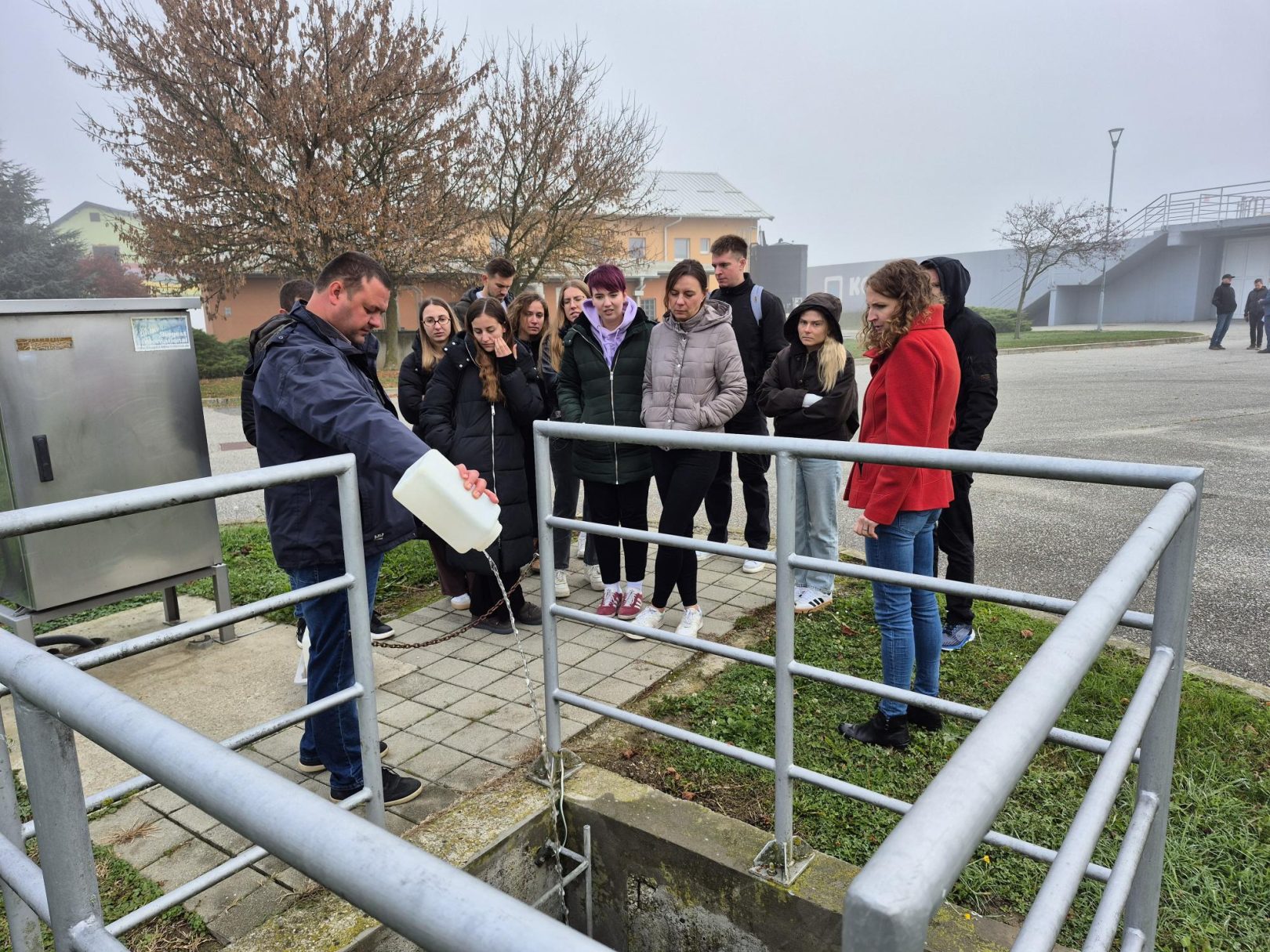 Na uređaju za pročišćavanje otpadnih voda studenti su imali priliku upoznati se s tehnologijama i procesima koji osiguravaju kvalitetno pročišćavanje otpadnih voda prije njihovog povratka u prirodu. Stručnjaci Koprivničkih voda predstavili su rad sustava, objasnili faze mehaničkog i biološkog pročišćavanja te istaknuli važnost održivog upravljanja vodnim resursima.
